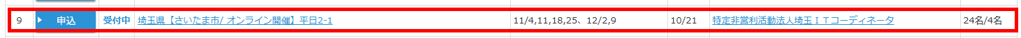 お申し込みは上記のページで「埼玉県【さいたま市/ オンライン開催】平日2-1」をご選択ください。